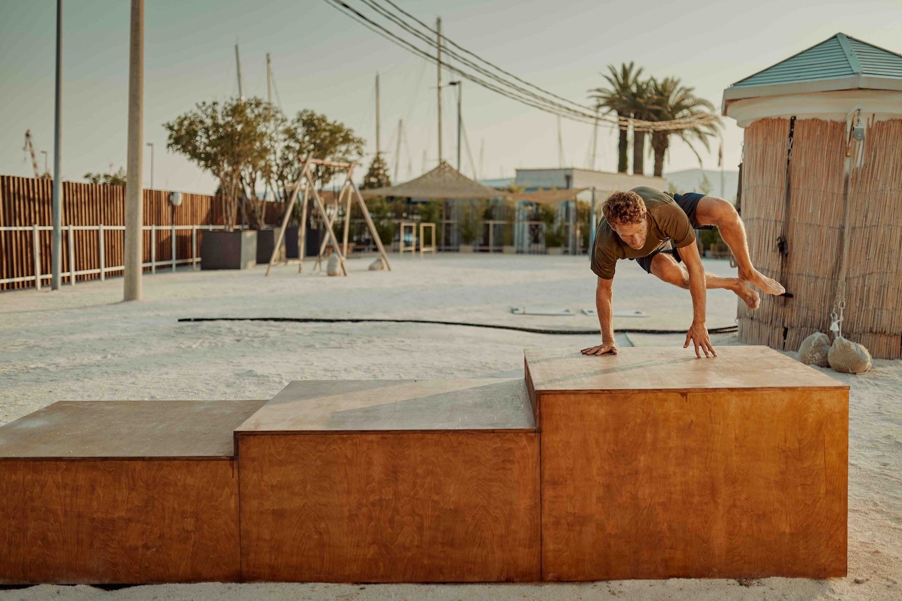 • Similar to the Sparta Gym example above we created for Sani Resort in Greece, an obstacle course is both a fun alternative to an outdoor workout and a challenge that goes beyond the classic gym moves of squats, hinges, presses, pulls and core work. An obstacle course will require climbing, balancing, carrying, throwing, and yes perhaps a few burpees too.