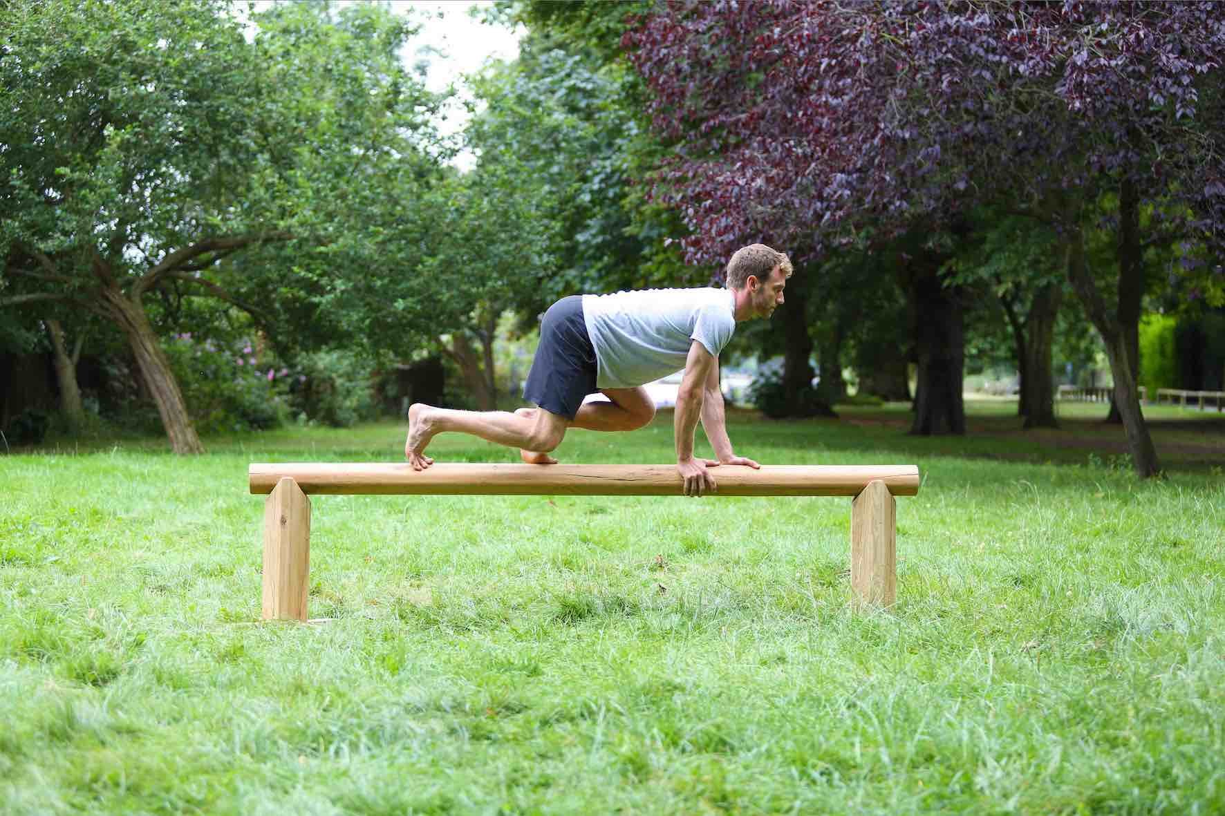 When space allows, we can create outdoor trails with obstacle or workout stations scattered along the path to provide a range of physical challenges. As this tends to be immersed in nature, we work with natural materials in these contexts, sourcing or designing outdoor fitness equipment using sustainable wood.